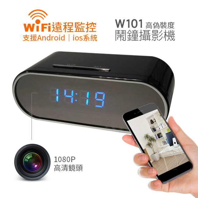 W101 無線WIFI 鬧鐘攝影機/手機監看 365天不間斷錄影 1080P高畫質