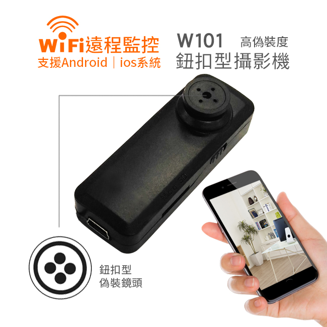 W101 WIFI手機遠程監看 鈕扣型針孔攝影機 1080P高清錄影