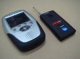 任何針孔攝影機.無線攝影機.都可以偵測出來.並可以顯示畫面及聲音.掃描功能簡單容易.可以在5秒內一掃而出.掃到畫面及聲音自動定格.聲音及影像可以同步錄影或監看.也可以用作萬用影音接收機使用!!!